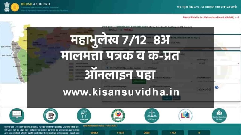 महा भूलेख महाराष्ट्र राज्य भूमि अभिलेख बिना हस्ताक्षर 7/12, 8A, संपत्ति कार्ड (ऑनलाइन संपत्ति कार्ड) और भूमि सर्वेक्षण प्रतिलिपि। संक्षेप में, bhulekh.mahabhumi.gov.in वेबसाइट पर अपनी भूमि ऑनलाइन देखें।