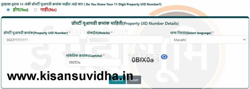 - पहली विधि में अगर आपको 11 अंकों का प्रॉपर्टी UID नंबर पता है तो प्रॉपर्टी UID नंबर टाइप करें।